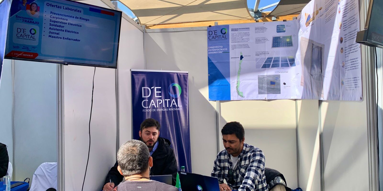 En un esfuerzo por fortalecer la relación entre el progreso local y la energía sostenible, D’E Capital se enorgullece de participar en la Feria Laboral de Antofagasta, donde compartimos detalles emocionantes sobre nuestro Proyecto Fotovoltaico Amanecer. Esta iniciativa es un testimonio tangible de nuestro firme compromiso con la empleabilidad y el crecimiento de la comunidad.